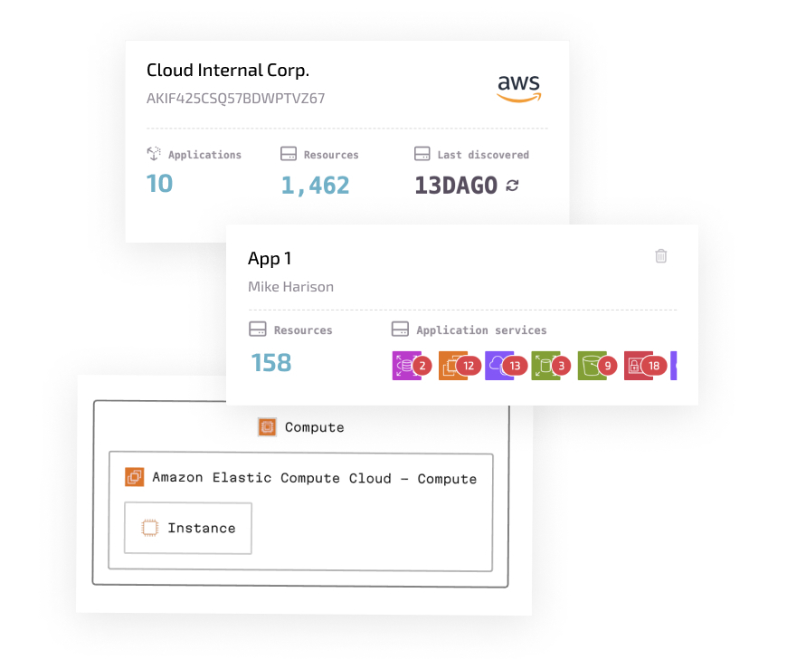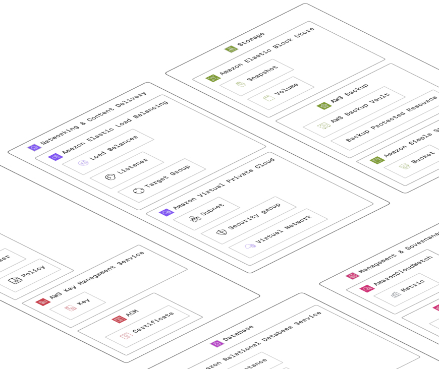 Helicopter view of the cloud and architectural representation of cloud resources.