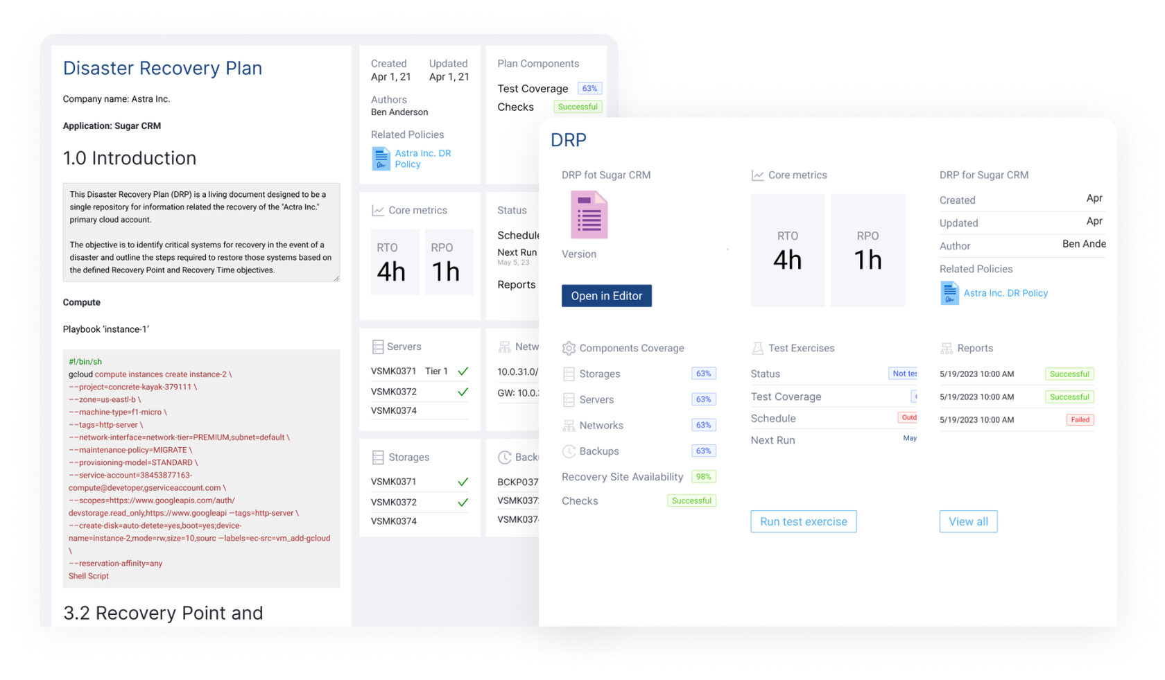 We have a solution that creates digital DR Plans, keeps them up-to-date, and tests their execution. You get an always predictable system recovery time in case of a disaster.
